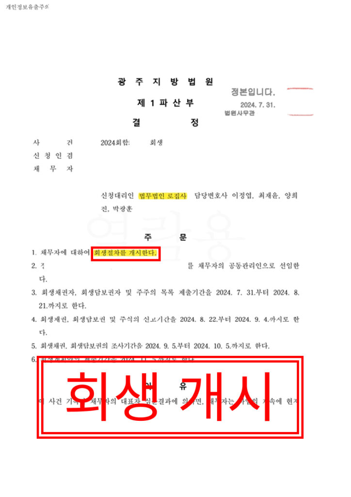 본 사건은 포장재 신제품 개발 및 제조 판매사업을 영위하고 있는 기업이 우발채무 문제로 인해 법원이 기업의 존속 가능성을 인정하여 회생절차 개시를 결정한 사례입니다.
