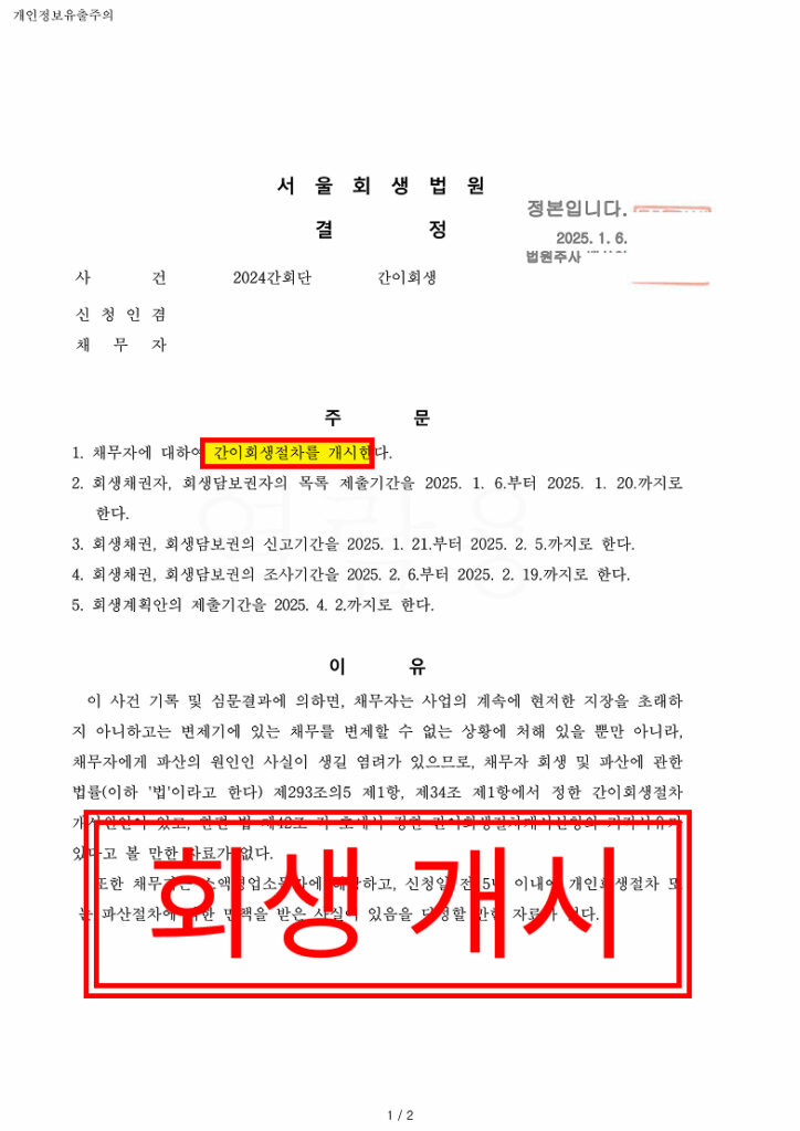 업무사례 일반회생 개인 ‘J’님 (부동산 투자·채무 조정) 2025-08-29 Print Example Copy Link Example 공유링크 복사 사건 개요 채무자 J님은 큰 규모의 부동산 투자를 통해 안정적이고 고수익을 기대하였으나, 부동산 시장의 침체로 인해 결국 투자 실패에 이르게 되었습니다.특히 해당 투자는 대부분 대출을 통해 이루어졌으며, 금리 상승으로 인해 막대한 대출 이자를 감당하기 어려운 상황에 직면하게 되었습니다. 이러한 자금 사정 악화로 인해 J님은 회생절차를 신청하게 되었습니다. 사건 결과 광주지방법원은 채무자가 현재 재정 상태로는 변제기에 있는 채무를 정상적으로 이행할 수 없으나, 회생을 통해 경제적 재기의 가능성이 충분하다고 판단하였습니다.이에 따라 법원은 2025년 1월 6일, J님에 대하여 간이회생절차 개시 결정을 내렸습니다.본 사건은 부동산 투자 실패와 금리 인상으로 인한 대출 이자 부담이 누적되면서 회생을 신청하게 된 사례로, 최근 부동산 경기 침체 속에서 유사한 상황에 놓인 개인 채무자들에게 중요한 참고가 될 수 있습니다. 절차 2024. 11. 27 신청서 접수, 보정처분신청서 및 포괄적금지명령 신청서 제출 2024. 12. 27. 보전처분결정 및 포괄적 금지명령 2025. 2. 6. 회생절차 개시결정 ← 목록으로